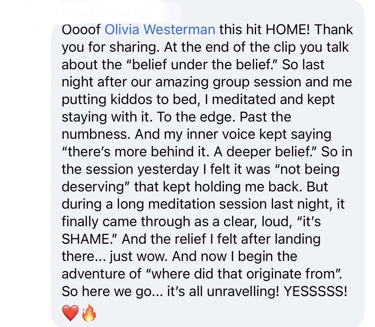 life-changing energetic shifts from previous containers...