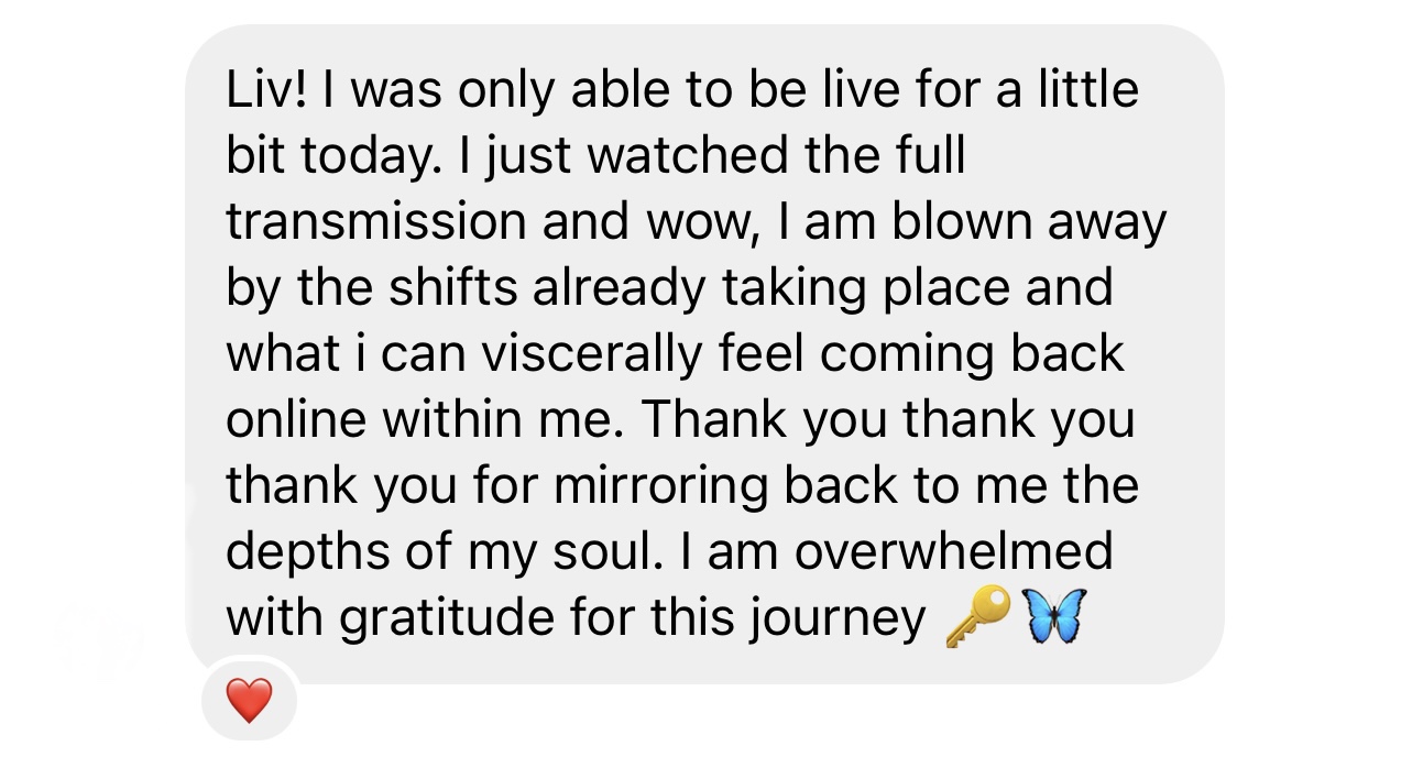 We are here to break open, break free and do the deepest healing work of our lives together. You are the content, and I am here to provide you with the steps, reference points + hold the space for your complete rebirth into who you really are through FULLY releasing all that you are not. I have seen miracles happen in one day, in one week, and I teach based on what is present for you and what I am being called to as the week unfolds.
